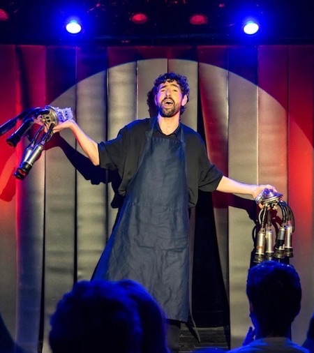 On connaissait les avaleurs de sabres. Quid des mangeurs de fourchettes ? Ils sont très rares, à ce qu'on dit et c'est peut-être cette spécificité qui a interpelé la Direction du Passy, au point d'inviter l'un de ces spécimens à se produire les mardis et mercredis jusqu'en mai. L'homme en question - Il s'appelle Gilles Bugeaud - n'a rien d'un phénomène de foire disgracieux. Bien au contraire ! Il porte beau, est même très élégant et, sans vouloir offenser la médecine, il ne semble pas gêné au niveau de la trachée, la glotte, la luette pour laisser passer un couvert, même à quatre dents. Pis encore : il chante ! Juste et bien. C'est un baryton de haut niveau, doublé d'un comédien à la "vis comica" indéniable. Libre aux grincheux d'en faire des gorges chaudes. La sienne va bien et en Frégoli de la corde vocale, sachez que sur lui tout passe, surtout les rires. Brillantissime !