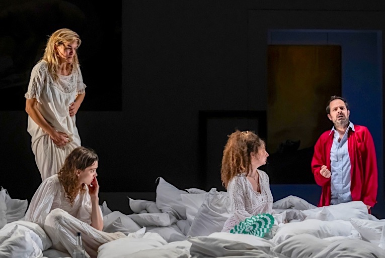 Dolorosa, mis en scène par Marcial Di Fonzo Bo, se présente comme une variation des Trois Sœurs de Tchekhov. On y retrouve les thèmes propres au dramaturge russe : la désillusion, les rêves inassouvis, l'ennui. À la seule différence que l'autrice Rebekka Kricheldorf installe ses personnages dans la société contemporaine, au cœur d'un vaudeville de l'existence, portrait caustique de notre époque. Pour donner vie à ces êtres à fleur de peau, témoins d'une génération naviguant à vue sur les flots troubles des sentiments, le metteur en scène a choisi une troupe de haut vol, au sein de laquelle trois actrices magnétiques campent les trois sœurs : Marie-Sophie Ferdane, Elsa Guedj, Camille Rutherford, trois présences incandescentes