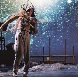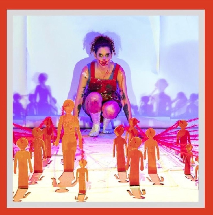 Sur la scène, elle joue, chante, danse ou répond à une voix off de journaliste pour donner vie à ce texte dont elle est aussi l'auteure.