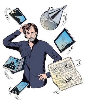 Dans le spectacle, il se moque gentiment du stand up. Il joue allègrement avec son grand corps longiligne et malléable comme s'il jouait d'un instrument. Il le pose, le reprend, le balance, le redécouvre. L'acteur nous livre ses doutes et, dans son périple, il côtoie plusieurs personnages utiles à sa construction et à son évolution. Un psychologue lui révèle quelques clés.
