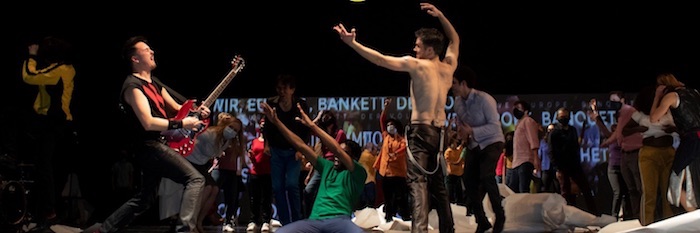 Nous, l'Europe, banquet des peuples est un projet d'écriture scénique pour onze acteurs et un chœur de foule. Il s'inscrit dans la réflexion commune avec Laurent Gaudé sur la nécessité de produire un récit européen. Ce projet est nourri par plusieurs voyages et rencontres capitales. Selon nos héritages et s'il fallait caractériser l'état des choses, nous pourrions dire que nous en sommes aujourd'hui "après la bacchanale", c'est-à-dire après un moment explosif où l'idée même d'Europe a besoin d'une nourriture différente, afin de ne pas laisser seuls les opportunistes et les monstres revenir à la charge... Une fois passée, cette bacchanale laisse tous les Européens en quête de leur identité générique.