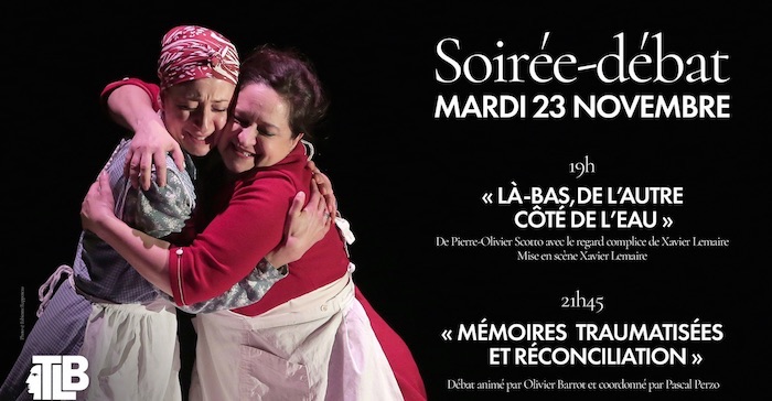 Rendez-vous au théâtre la Bruyère le 23 novembre pour une soirée débat. À 19h00 aura lieu la représentation de "Là-bas de l'autre coté de l'eau", et sera suivie d'un débat à 21h45 sur le thème "Mémoires traumatisées et réconciliation", animé par Olivier Barrot.