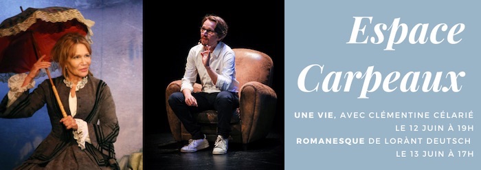 L'Espace Carpeaux réouvre ses portes, avec une belle programmation pour le week-end ! Le 12 juin à 19h (re)découvrez Clémentine Célarié dans "Une Vie", et le 13 juin à 17h retrouvez Lorànt Deutsch dans "Romanesque". Deux seuls-en-scène qui ne se manquent pas ! Réservez dès maintenant.