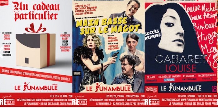 Parce que toute l'équipe du théâtre était impatiente de vous retrouver, ils n'ont pas résisté ! Le Funambule Montmartre ouvre ses portes pour des dates exceptionnelles du 19 mai au 13 juin, avec ses 5 spectacles: Main basse sur le magot, Cabaret Louise, La Folle et inconvenante histoire des femmes, Un Cadeau Particulier, ainsi que Charlie Poppins. Il y en a pour tout le monde, tous les goûts et tous les âges alors profitez-en !