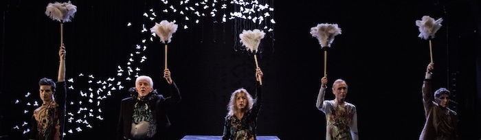 Je n'ai plus rien à voir avec moi. Il faut au moins ça : organiser un repas avec maître d'hôtel très stylé et chanteuse debout sur la table, pour rire de la fin de Lear, grand amour, grand ami, mort fou. Mais à cet étrange repas le défunt se bâfre avec les autres. L'humour ne conjure pas le sort, il le provoque. La poésie crue met à distance la tragédie de l'inévitable et la décrépitude qui va avec.