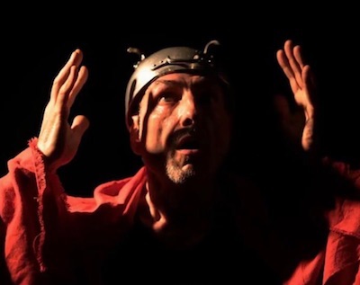 Philippe Nicaud avance sur scène, une guitare à la main. Il chante (très bien), la voix est puissante, l'anglais impeccable. On s'attend d'emblée à un concert folk-rock au vu des rythmes et des sonorités. Et puis vient l'histoire. Le chanteur se mue alors en narrateur et surtout en acteur car il joue avec une aisance et une dextérité époustouflante tous les personnages. A cette pièce tragique il apporte même un peu de fantaisie (Pour les Trois sœurs du destin, il remonte son t-shirt sur la tête, on croit voir Marty Feldman dans « Frankenstein Junior). N'allez pas pour autant croire qu'il parodie l'œuvre. Bien au contraire, il suit la chronologie, le texte. Tout en plus en fait-il un résumé en 70 minutes.