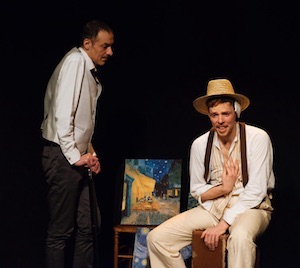 À la puissance du texte, intelligent et accessible à tous, à la sobriété de la mise en scène, il faut ajouter la performance incroyable des deux comédiens (Julien Séchaud et Ghislain Geiger) qui, dans un espace aussi restreint et en soixante-quinze minutes, déroulent la vie des deux frères et les incarnent à la perfection. Ils sont là, devant nous et on y croit, on les voit : Julien-Vincent est tourmenté, violent, épuisant dans ses crises régulières de paranoïa et Ghislain-Théo de plus en plus courbé, fragile, émouvant dans son incapacité à vendre les toiles de Vincent, ce frère qu'il aura soutenu en vain et qui, au gré de ses nombreuses villégiatures, n'aura jamais su trouver sa place, faisant même fuir tout le monde, y compris son ami Gauguin.