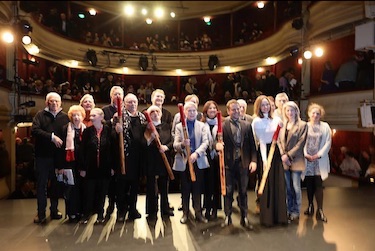 Suivit après un long panégyrique d'Anne Delbée Minne Vergès, une autre gamine de 89 printemps... Plus timide, en dépit de son renom stratosphérique, la Reine du Costume n'en tailla aucun, fidèle sans doute à la formule Shakespearienne "Rest is silence". Jacques Rouveyrollis, le dernier récipiendaire, homme de l'ombre et incontournable phare de toutes les scènes, préférant les lumières aux sons, se montra lui aussi économe de mots. Ainsi s'acheva la 24è édition avec, pour point d'orgue, le dévoilement de la plaque commémorative à l'entrée du théâtre de celle qui fut pendant des décennies l'âme de ce lieu : Myriam de Colombi