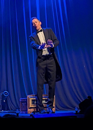 Juché sur un cube, ajustant son queue-de-pie, baguette et partitions en main, il entend bien faire autorité et redonner ses lettres de noblesse à l'art de siffler, encore trop méconnu. Dans ce cours ex-cathedra pour le moins décalé - on est entre burlesque et poésie - où les anecdotes alternent avec des morceaux de bravoure musicaux et un "blind-test" participatif, le public jubile. Et il y a de quoi !