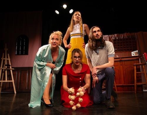 Sur fond de tableau volé - une croute ! - dans un hôtel cheap quasi désert où vont débarquer un bellâtre et un ex-star de la chanson, sans moyens aucuns pour investiguer à part des remèdes de grand-mère, la directrice et son amie mènent l'enquête. Mais... n'est pas Miss Marple ou Hercule Poirot qui veut. Ça patine, ça patine et quand des événements étranges se produisent la nuit comme l'arrivée de fantômes et autres spectres, les esprits s'échauffent en mode "Qui a volé l'orange ?". C'est kitsch à souhait, drôlissime et surtout rythmé. Ça chante - juste, très juste, la plupart venant du lyrique ou du jazz - et le jeune pianiste - formidable Alexandre Laugier -, déjà aguerri et à l'écoute, suit voire précède ou meuble quand il faut. C'est rafraichissant à souhait, pétillant comme du mousseux mais amélioré, façon "Pin Sylvestre". La recette de ce cocktail est simple : pas de temps mort, un texte léger mais bien construit, du rythme, de la bonne humeur et... les prouesses vocales de Angelo Heck (beau et bon baryton-basse), Sarah Nardon, Hortense Venot, Nina Despres qui vont en surprendre plus d'un.