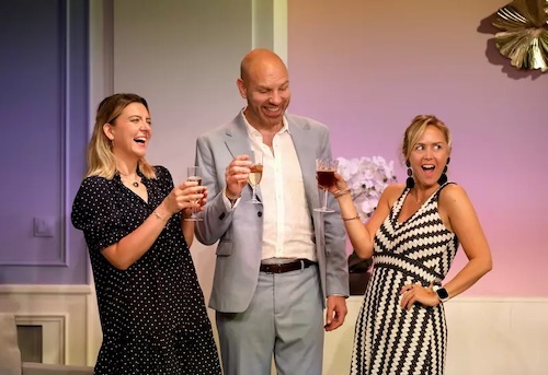 Ils sont trois dans cet appartement pour fêter le 40è anniversaire du quatrième, un anniversaire-surprise qui va tenir toutes ses promesses car, comme dans tout bon boulevard, on va assister à des rebondissements en cascades dans une fête qui ne cesse de dégénérer. Raconter la pièce, en faire un pitch circonstancié serait une injure à l'auteur et aux comédiens qui, au passage, s'amusent follement et décochent à tour de rôle force flèches qui régalent le public. Avec "La soirée avait si bien commencé", dont le "si" est déjà ironique, on est dans la comédie de mœurs, entre action et vérité, où chacun des personnages se découvre au milieu des quiproquos, un "je t'aime, moi non plus" irrésistible, dans la lignée d'une autre pièce à succès qui démarrait pareillement... par un message téléphonique qui allait mettre le feu aux poudres : "J'aime beaucoup ce que vous faites", la comédie-phare de Carole Greep.