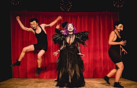 Ils ont le sens du contact, ces quatre clowns qui n'ont pas attendu le début de la pièce pour se glisser dans le public et faire connaissance... grimés, costumés, prêts à jouer. Ce "Bal des voleurs", qu'on classe d'ordinaire comme une comédie de jeunesse, légère, et qui fut souvent adaptée, même pour la danse, se prête formidablement à la farce et à la poésie. Tout ici est burlesque : l'intrigue, rocambolesque, les costumes, extravagants, les masques - très réussis, puisqu'ils permettent parfois même de jouer deux personnages en un - les mimiques et ce travail du corps qu'on ne peut ici que louer tant le jeu de chacun (e) est précis, presque millimétré et surtout... varié. C'est habile, brillant, ces quatre-vingt-dix minutes s'écoulent sans qu'on soit tenté de regarder sa montre. Il y a chez cette petite troupe l'énergie du diable. Avec elle, le public prend un bain de jeunesse, les enfants jubilent, les adultes sont admiratifs. On est chez Guignol mais en grand. Émerveillés que nous sommes par tant de maîtrise, de talent et surtout de drôlerie, on redécouvre en même temps la pièce avec bonheur grâce à la judicieuse mise en scène de Thimotée Grivet (Il joue aussi avec ses trois brillants partenaires : Fanny Fourme, Camille Mammar, Achille Aboulin - en alternance avec Nicolas Le Guen-). Dans ce mix de vrai et de faux où la malle aux costumes permet en un tournemain de se travestir sans pour autant perdre le public (on identifie aussitôt les personnages), on se régale de toutes ces vaines duperies qui nous renvoient à l'avertissement prononcé dès le début :