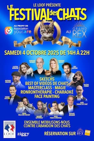 FESTIVAL. Le Festival des Chats est un événement caritatif au profit de l’association YouCare, proposant de 14h à 22h au Grand Rex le samedi 4 octobre 2025, une programmation familiale 100% chat, pour les petits et les plus grands ! Le Festival des Chats invite tous les amoureux des félins, chats de gouttiè...