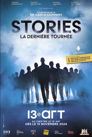 Stories est un spectacle de danse dans une ambiance fin des années 40, avec l'histoire d'un acteur qui subit la pression de sa production. Les musiques de l'époque inspirent bien la troupe d'une dizaine de danseurs, grâce à la modernité de la chorégraphie, et au mariage claquettes et danse sans parole. Les danseurs nous entraînent dans un rythme effréné ! La scénographie est digne d'une grande production hollywoodienne, bien que le créateur soit français. Un joli divertissement.