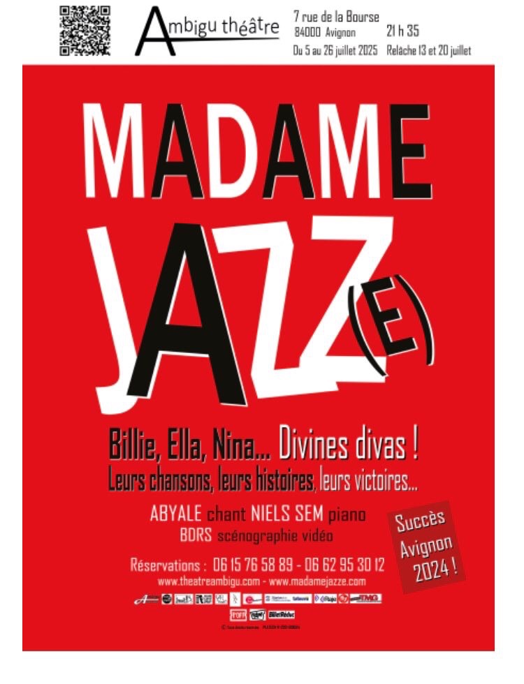 Lady Day, Nina Simone, Aretha Franklin, Tina Turner, Joséphine Baker… Indomptables chanteuses de jazz ! Des vies déchirées, des enfances cabossées, mais toujours une furieuse envie de vivre, de chanter, de danser! Leurs chansons iconiques, des anecdotes étonnantes, un duo de choc au chant et au piano, une scénographie vidéo qui nous rappelle les visages de ces femmes puissantes… Bienvenue chez Madame Jazze ! Un spectacle au féminin ouvert à tous les amoureux de la musique.