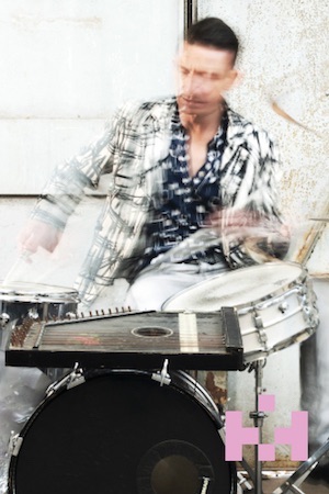 Riche d’un bagage éclectique, Antonin Leymarie – qui navigue entre jazz, électro, musiques africaines, (post-)rock et musique contemporaine – s’est attaché à développer un langage hétéroclite, cherchant à dépasser toutes les limites pour atteindre des états de transe. Dans son aventure solitaire Hyperactive Leslie, tel un authentique homme-orchestre, il met en branle un dispositif percussif sur mesure, méthodiquement agencé pour permettre d’engendrer une musique à la fois spontanée et sophistiquée. Éminemment organiques, ces sonorités ne sont produites ni par ordinateur ni par séquence préenregistrée. Elles résultent d’un dialogue fécond entre l’artiste et sa batterie, sur laquelle sont posés des bouts de métal, de gomme, des petites percussions cassées comme des karkabous utilisés dans la musique Gnawa, des tambourins, une vieille cithare… Tel un artisan, s’inspirant volontiers de l’esthétique techno et minimaliste, Antonin Leymarie nous plonge dans une expérience sensorielle libératrice.