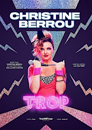 Christine Berrou a grandi dans les années 80 et 90, époque où une fille ne devait jamais être "Trop" : trop bruyante, trop entreprenante, trop curieuse, trop ambitieuse, trop bavarde, trop revendicatrice… C’est à 40 ans, après 15 ans de scènes et d’émissions, dont quatre passées au Jamel Comedy Club et sept sur Europe 1, en passant par RTL et France 2, que Christine réalise qu’elle n’a jamais été assez. Assez elle-même. Ce spectacle en a même failli s’appeler "Plus rien à foutre" et revient sur tous les aspects de la vie de femme, d’être une mère célibataire à être une femme humoriste, de ce que la fiction a voulu faire de nous de Cosette aux Princesses Disney, et puis l’amour à l’heure des applis, et puis l’écologie, et puis #metoo… Ça parle d’elle mais ça parle surtout de vous. Alors ? Êtes-vous de ceux qui sont trop ou de ceux qui ne sont pas assez ?