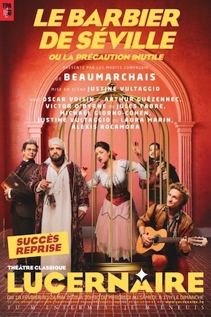 COMÉDIE RÉPERTOIRE CLASSIQUE de Beaumarchais, mise en scène par Justine Vultaggio, assistée d’Alexis Rocamora, avec Oscar Voisin ou Arthur Guézennec, Victor O’Byrne ou Jules Fabre, Michaël Giorno-Cohen, Justine Vultaggio ou Laura Marin, Alexis Rocamora.