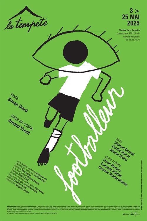 Avec Footballeur, le comédien et metteur en scène Arnaud Vrech conçoit un projet librement inspiré de la vie de son grand frère. Alors que celui-ci s'engageait dans une carrière de footballeur professionnel toute tracée, il apprend qu'il est atteint de rétinite pigmentaire. Il va progressivement perdre la vue et rien ne peut l'empêcher. C'est à l'occasion d'un tournoi de foot, dans un vestiaire suranné bruissant de cuivres sans doute échappés d'une fanfare, que les deux frères vont se parler pour la première fois, dépassant ainsi la pudeur du cercle familial.
