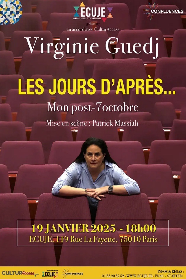 Avec son spectacle, Virginie nous plonge au cœur des bouleversements qui ont secoué Israël et le monde juif après le 7 octobre. Entre journal intime et cri du cœur, ce spectacle explore la quête d’espoir d’une femme tiraillée entre deux pays : Israël, sa terre d’adoption qu’elle découvre encore, et la France, son pays natal devenu méconnaissable à ses yeux. Entre rires et larmes, Virginie décortique les contradictions, les blessures et les résiliences de notre monde contemporain.