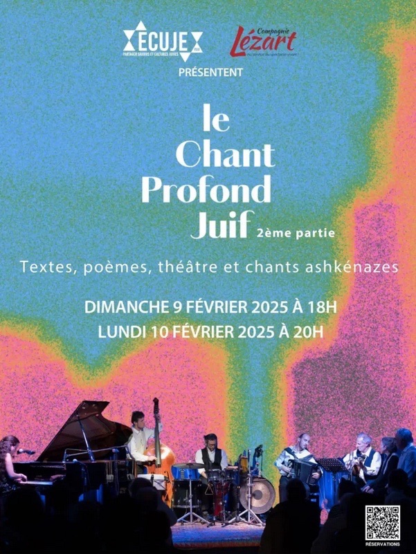 Plongez au cœur de l’héritage culturel exceptionnel des Juifs ashkénazes à travers le spectacle « Le Chant Profond Juif », présenté en avant-première à l’ECUJE les 9 et 10 février 2025. Cette création unique célèbre la richesse littéraire, théâtrale et musicale d’une communauté qui, malgré les tumultes de l’histoire, a su préserver et sublimer un patrimoine universel.