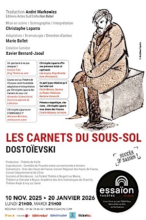 THÉÂTRE CONTEMPORAIN de Dostoïevski, traduction d'André Markowicz, mise en scène de et avec Christophe Laparra.