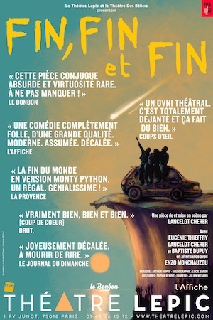 3 comediens nous font partager une histoire déjantée sur fond de fin du monde. Reference evidente aux Monthy Python par instants !