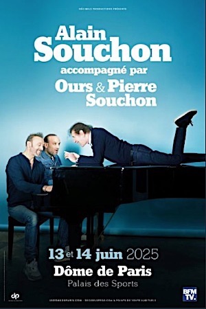 Il y a un peu plus de 4 ans, Alain Souchon publiait un nouvel album acclamé par la critique, Âme fifties, fruit d'une étroite collaboration avec ses deux fils. S'en est suivi une tournée triomphale de plus de 100 dates. Cette année, Alain Souchon repartira pour une nouvelle tournée, accompagné de Ours et de Pierre Souchon. C'est tous les trois sur scène qu'ils s'apprêtent à revisiter le répertoire d'Alain Souchon, entre titres incontournables, perles rares et quelques surprises.