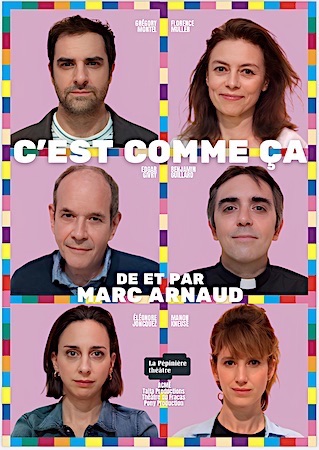 TRAGI-COMÉDIE de et mise en scène par Marc Arnaud, avec Grégory Montel, Florence Muller, Edgar Givry, Benjamin Guillard, Éléonore Joncquez et Manon Kneusé.