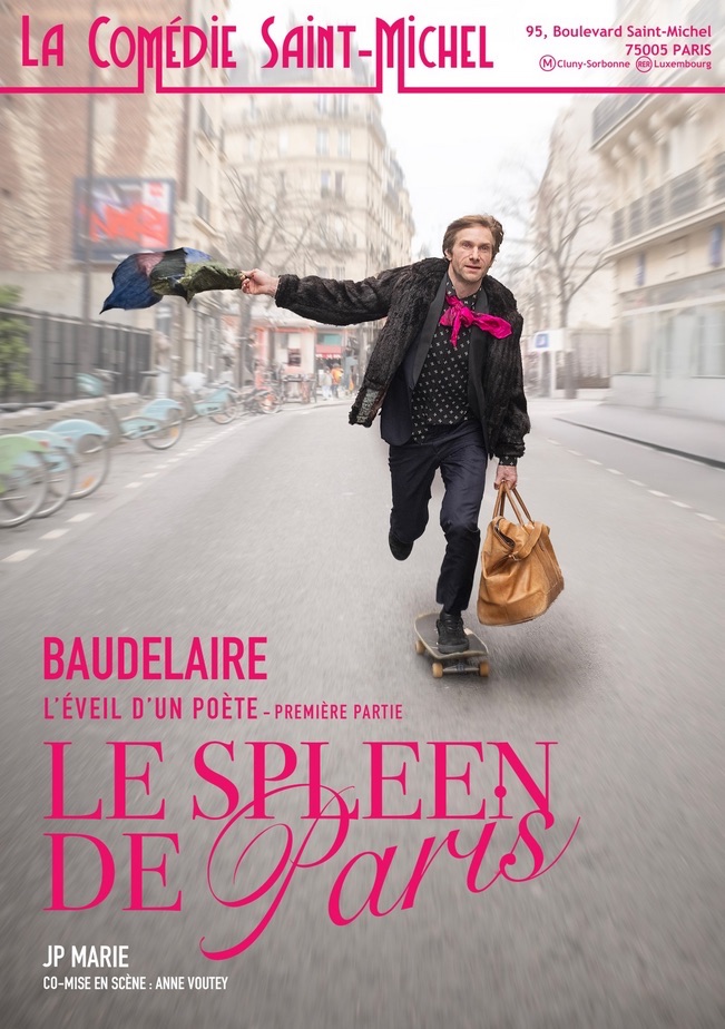 Le Spleen de Paris est la quête artistique d'un poète, d'un « marchand de nuages ». Baudelaire nous transporte à travers sa tortueuse fantaisie. A travers dix poèmes en prose, le spectacle nous plonge dans le monde de Baudelaire, à une époque charnière où la modernité frappe à chaque coin de rue. C'est l'époque des grands travaux du baron Haussmann qui transforme complètement Paris, ville où est né et a vécu le poète et qu'il nous donne à voir mieux que quiconque.