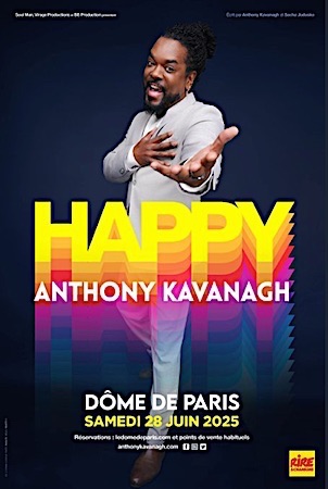 Le monde n'a jamais eu autant besoin de rire. Heureusement, la providence nous a envoyé un homme venu du froid pour réchauffer nos coeurs et nous faire oublier nos soucis. Il a traversé l'Atlantique à la nage, abandonné sa femme, quitté ses enfants... tout ça pour vous faire rire, vous les Français (les Belges et les Suisses aussi !), alors vous avez tout intérêt à être au rendez-vous ! Anthony Kavanagh, l'humoriste-showman aux multiples talents et à l'énergie débordante, partagera avec vous tout ce qui le rend "Happy"!