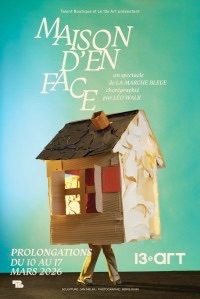 Après une série de représentations complètes au Théâtre du Châtelet et à La Salle Pleyel, ainsi qu’une tournée dans toute la France, en Suisse et en Belgique, Léo Walk et sa compagnie La Marche Bleue nous invitent à les suivre à nouveau dans leur « Maison d’en Face », pour 12 dates au 13e Art ! L’intimité d’une salle à manger, du mobilier aux courbes oniriques. On y voit des femmes et des hommes y évoluer en vase clos. Les amitiés, les couples, se font et se défont dans la cohabitation. Aux scènes de vie succèdent les scènes de ménage. « Maison d’en face » est une exploration poétique des sentiments amoureux et amicaux, au travers de situations du quotidien.