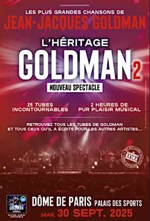 Découvrez le nouveau spectacle époustouflant de « l’Héritage GOLDMAN 2 », où les tubes intemporels de Jean-Jacques croisent les plus belles chansons qu’il a écrites pour les plus grandes voix de la chanson Française telles que Céline Dion, Johnny Hallyday, Patricia Kaas et Florent Pagny.