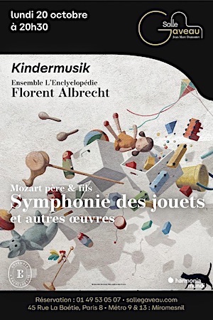 Pour les petits et les grands, ce programme est dévolu aux oeuvres résolument originales de Léopold et Wolfgang Mozart, où se feront entendre des instruments rares et originaux des Lumières tels un coucou, un fouet, un croissant turc, une corne de brume, un rossignol…. Florent Albrecht et son ensemble L’Encyclopédie explorent l’univers malicieux des Mozart père et fils. Qu’il s’agisse de la célèbre Symphonie des jouets ou de la tintinnabulante Promenade en traîneau de Leopold, assurément joie fantaisie riment ici avec subtilités – autant de qualités portées par une approche stylistique assumée de leurs interprètes. La Serenata notturna de Wolfgang répond en finesse à cet univers enfantin lors d’une véritable fête nocturne aux accents "rustiques"; le Concerto pour pianoforte et orchestre kv 415, en contrepoint, fait entendre le son enthousiaste de L’Encyclopédie dans le premier "grand" concerto du jeune Mozart devenu adulte.