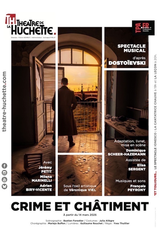Nous connaissons tous ce roman psychologique de Fiodor Dostoievski mais cette adaptation par Dominique Scheer-Hazemann, qui a aussi fait la mise en scène spécialement pour la petite scène du Théâtre de la Huchette, sous forme de théâtre musical apporte un vent nouveau à cette œuvre classique ! Milena Marinelli, Adrien Biry-Vicente et Jérémy Petit sont de merveilleux acteurs chanteurs qui jouent aussi bien qu'ils chantent ! Bien que les textes soient en grande partie chantés, ce n'est pas une comédie musicale car c'est avant tout du théâtre avec de belles performances d'acteurs ! On se laisse vite emporter par ces personnages qui chantent sur une musique de François Peyrony et on apprécie le travail sur le texte qui respecte très bien le roman originel. On ne perd rien du côté dramatique de cette œuvre, du traitement des femmes par la société, des états d'âme de Rodion Raskolnikov, de l'emprise psychologique du commissaire Porphyre, du positionnement des hommes dans telle ou telle catégorie et on ne peut que se rendre compte que, malheureusement, ce texte est toujours d'actualité 150 ans après ! Un très beau moment de théâtre !
