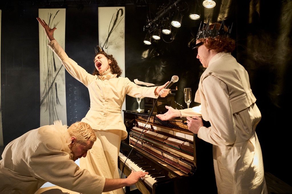 Il était une fois un roi et une reine vraiment très méchants, et un bouffon persécuté. Enfermés malgré eux dans un palais, ils doivent cohabiter. Trois clowns grotesques et cruels, aux corps tordus et dégingandés, tout droit sortis de chez Beckett, Kantor ou même Tarantino. Pathétiquement drôles, ces trois antihéros névrosés se disputent le pouvoir et ça déborde de toutes parts. D’une valse monstrueuse à un suicide, en passant par des courses-poursuites et des résurrections, le trio sarcastique ne recule devant rien pour venir explorer les rouages de la violence et de son renversement. Comment échapper au réel qui enferme et aux stéréotypes sinon par la jouissance du jeu ? Loin de tout naturalisme, voici une farce sur le pouvoir et la possibilité d’en abuser, une anatomie joyeuse et clownesque de la violence et de la domination.