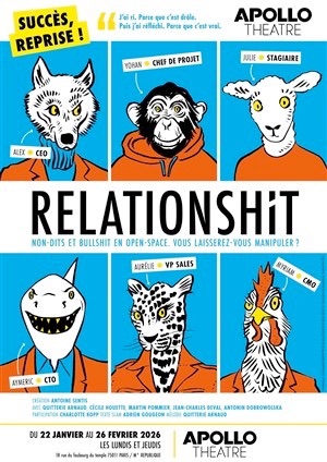 L'Apollo a dû annuler Relationshit ce lundi 23/02/2026 en raison du « retard » du spectacle précédent, décevant spectateurs et comédiens. L'échange avec l'artiste Antonin Dobrowolska, l'annonce d'une reprise prochaine dans un autre théâtre et la découverte de Le Casse du Siècle, inspiré de l'affaire Spaggiari, dans lequel il joue, ont toutefois éclairé la soirée. Belle rencontre aussi avec Katell, adhérente STARTER passionnée de théâtre. Les aléas du vivant réservent parfois des surprises.