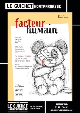 Du 12/3 au 10/5: le Jeudi à 20h45, le Dimanche à 18h00. Places à 22,90€. Durée 1h10.