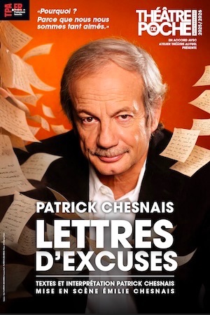 « J’ai eu envie d’écrire des lettres à des personnes que j’aime ou que j’ai aimées. Très vite, ces missives sont devenues des lettres d’excuses. Je dois des excuses à la politique, à la vie, et même au soleil. J’y fais se succéder avec irrévérence le tragique et le burlesque, ce qui est depuis toujours mon terrain de jeux préféré ». Patrick Chesnais se livre à un singulier exercice de confessions, mêlant l’humour à la sincérité, l’intime au spectaculaire. Un face à face unique entre lui, sa vie et nous !