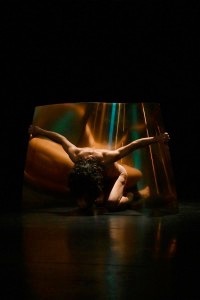 DANSE CONTEMPORAINE. Un homme nu danse avec une plaque de laiton. Produisant sa propre musique, diffractant la lumière en reflets étranges, celle-ci semble animée d’une vie propre et nous emmène dans un univers qui navigue doucement entre clair-obscur baroque et images futuristes. Dans ce pas de deux, la frontière ent...