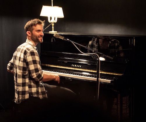 Comme sorti d'un placard en apparaissant, guitare à la main, de derrière le rideau, tel un lutin investissant son grenier, il nous offre ses premiers trilles. Il chante et joue - juste, très juste - avec ce sourire aux lèvres et cet air taquin qui ne le quitteront jamais. Facétieux en diable et un brin "perché", il impose d'emblée son style : petite jupe noire, chemise à carreaux, baskets, le cheveu en bataille, tel est louis Caratini, troubadour moderne, "en-chanteur" de la scène. Au sol, un tapis, des instruments de musique : guitare, xylophone, le piano... évidemment, puis quelques lampes qu'il va orienter selon son humeur. Il est comme chez lui, relax, Mr Feelgood. Fascinant ! Il y a dans cette décontraction de la magie, de la poésie, de la fantaisie mais aussi et surtout de l'érudition. Le public qui joue à deviner l'auteur de tel ou tel standard saisit en même temps la puissance mémorielle des musiques - ah, les madeleines ! -, découvre le sens et l'histoire de la propriété intellectuelle, s'enthousiasme en l'écoutant jongler avec les mots, accepte même de se perdre dans le labyrinthe du diablotin protéiforme. Vous pensez l'entendre interpréter du Lavilliers, du Nougaro, du Brassens... Las ! C'est son œuvre à lui, cette fois, ses mots à lui, Louis Caratini est aussi auteur-compositeur-interprète.
