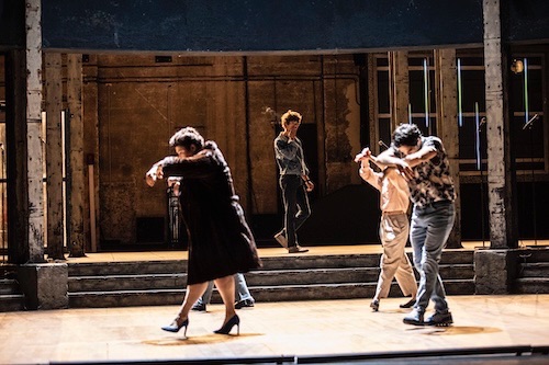 Qu'est-ce qu'être vivant quand on va mourir ? Continue-t-on à vivre alors qu'on est mort ? Les frontières sont floues et Christophe Honoré les floutent davantage : les voix s'imposent ou s'égarent dans la salle, proches ou lointaines - par un habile jeu de micros -, les comédiens apparaissent et disparaissent - troublante déambulation de Paul Kircher, en Bernard-Marie Koltès candide, sur un écran vidéo - pour réapparaître autrement ou ailleurs... Ils sont six sur scène, six hommes - 4 comédiens et 2 comédiennes, un choix bienvenu -, six fantômes d'homosexuels.