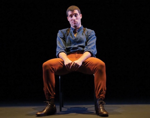 Coté décor et mise en scène, il a fait le choix d'un plateau quasi nu, d'une chaise qu'il manie avec force et violence, d'un tableau mural qui s'ouvre et se ferme, avec des ouvertures dessous par lesquelles il s'échappe et revient. Une spectatrice remarquait avec justesse que "le comédien mouille sa chemise" (sic). C'est peu de le dire, il est après une heure trente lessivé. Le jeu est puissant, brut, abrupt, violent mais juste. Comme un boxeur sur le ring, il a tout donné. On eût peut-être aimé un habillage musical mais le pouvoir des mots et l'incarnation se suffisent peut-être. En tout cas, la performance est là. Respect. Admiration.