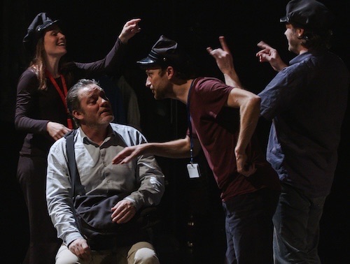 La mise en scène de Luca Franceschi, habile et fine, est volontairement dépouillée. L'essentiel tient dans les mots, la direction d'acteurs. Les décors et accessoires sont minimalistes et mobiles. Tout tient dans le récit et le jeu des deux frères (magnifiques Valérian Moutawe et Nicolas Moisy), accompagnés par une petite troupe qui joue, comme dans un thriller, tous les personnages avec conviction et talent.