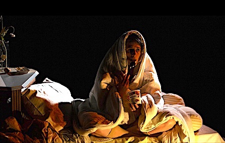 C'eût pu être "boutique", ne concerner que la communauté juive mais d'emblée, quelle que soit sa religion, chacun se sent concerné. Parfois, comme disent les djeun's, on n'a pas forcément la réf mais on raccroche vite les wagons car, mutine, souriante, décontractée, Sophie nous invite à un voyage iconoclaste dans sa judéité qui est sûrement irrévérencieux pour les puristes mais juste et poétique pour les autres. Elle nous reçoit dans son lit en bordel - manière de radeau de la méduse qui tangue et pourrait même prendre l'eau de toutes parts - sur le "Total eclipse of the heart" de Bonnie Tyler. Ca sonne rock, ça promet, ça va dépoter ! Et, de fait, elle se tourne, se retourne dans son lit comme elle tourne et retourne ses pensées. Son lit, c'est son champ de bataille, son pré propice aux duels où avant de perdre ou gagner, elle choisit de nous délivrer, à la manière d'une confession intime sans pudeur mais toujours élégante, ses expériences amoureuses. "Bien sûr, nous eûmes des orages", chantait Brel. Chez elle, ce sont des bourrasques, parfois même des tempêtes qui ont émaillé ses amours. Elle a pourtant tout pour plaire, elle est belle, intelligente, souriante et gaie, dévouée à l'autre, prête au sacrifice en revêtant - symboliquement - une tenue de plongée pour atteindre le Graal des vérités talmudiques... Las ! Tant d'énergie pour rien ou si peu ! Enfin, non car le public, lui, suit avec amusement ses tribulations, rit à gorge déployée de l'amant lisant des pages entières du Lévitique, du discours de l'autre sur l'impureté des femmes. Sophie Engel, fidèle à la tradition juive, manie l'humour avec délice. Comme une chatte, elle se meut avec agilité. Dans son lit, elle cabriole, danse, lâche ses cheveux, balance les coussins, s'habille, se déshabille... elle est vivante, Reine des Neiges libérée-délivrée. Catharsis ou droit d'inventaire ? Le résultat est là. Elle pose les vraies questions, s'affranchit...avec le sourire. Elle est solaire, elle est rire et sincérité, elle est juive mais pas que. Elle est femme avant tout et si elle nous émeut en faisant un inventaire à la Prévert de tout ce qui l'a formée, de tout son héritage juif, elle n'oublie pas qu'il faut parfois... trancher. Le public, lui, a tranché. Standing ovation amplement méritée.