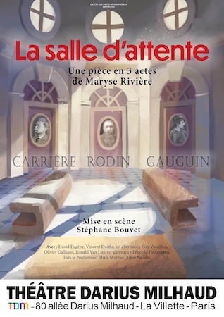 THÉÂTRE CONTEMPORAIN à partir de 13 ans. Et si le jugement dernier avait lieu… dans un hall de gare ? Bienvenue dans La Salle d’attente, une pièce de théâtre singulière où se croisent les âmes de trois géants de l’art – Paul Gauguin, Eugène Carrière et Auguste Rodin – propulsés dans un étrange entre-deux-mondes, chargés de décider eux-mê...