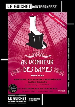 Chapeau pour cette adaptation réussie du fameux roman de Zola et pour l'interprétation ingenieuse et vivante de Pascale Bouillon ! Malgré la multitude de personnages, les variations dans les voix, couvre-chefs et mimiques permettent de s'y retrouver. Cependant, les sièges inconfortables et la chaleur étouffante de la petite salle rendent la concentration un peu difficile sur la fin ; cela mériterait un théâtre plus adapté.