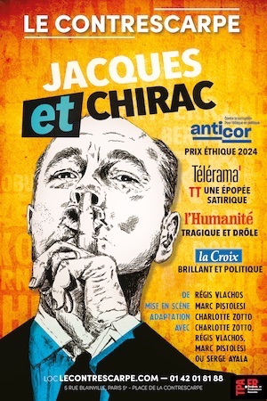 Une comédie satirique, drôle et grinçante sur le pouvoir, le mensonge et la République. Un feu d’artifice sur Jacques Chirac, mené à cent à l’heure. Après les spectacles Dieu est mort et moi non plus j'me sens pas très bien et Cabaret Louise, Jacques et Chirac est la nouvelle création de Régis Vlachos. Ce spectacle est mis en scène par Marc Pistolesi, metteur en scène de Ivo Livi sur la vie d'Yves Montand, couronné du Molière du meilleur spectacle musical en 2017.