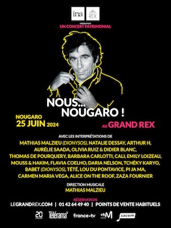 Sous la direction musicale de Mathias Malzieu, chanteur et leader du groupe Dionysos, le Grand Rex vibrera au son des plus grands tubes de Claude Nougaro, interprétés par un casting d'artistes exceptionnels. Vingt ans après sa disparition, l'homme aux mots d'or continue de toucher nos cœurs et d'inspirer les générations. Jazz, Blues, Java, Musiques du monde : tous les univers chers à Claude Nougaro prendront forme sur scène pour une soirée inoubliable. Cet hommage sera l’occasion de redécouvrir ses plus grandes chansons, interprétées par des artistes de renom : Mathias Malzieu, Aurélie Saada, Thomas de Pourquery, Olivia Ruiz & Didier Blanc et bien d’autres encore !