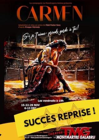 Cette adaptation de la nouvelle de Mérimée offre une vision intéressante et fidèle à l'esprit du texte. La personnalité de l'héroïne, farouchement indépendante et déterminée à rester libre, est décrite avec justesse. Son indifférence face au mal qu'elle peut causer la rend à la fois fascinante et troublante. La jeune troupe incarne avec conviction cette intrigue intense, soutenue par une mise en scène sobre qui laisse toute sa place au jeu des comédiens. Une belle proposition, sans artifices inutiles, qui met l'accent sur la force du récit et la vitalité des interprètes. Un bon moment de théâtre.